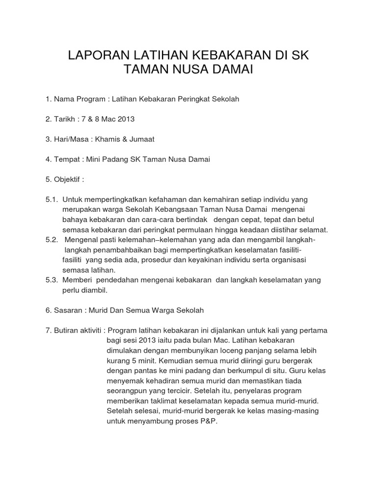 Laporan Latihan Kebakaran Di Sk Taman Nusa Damai Pdf
