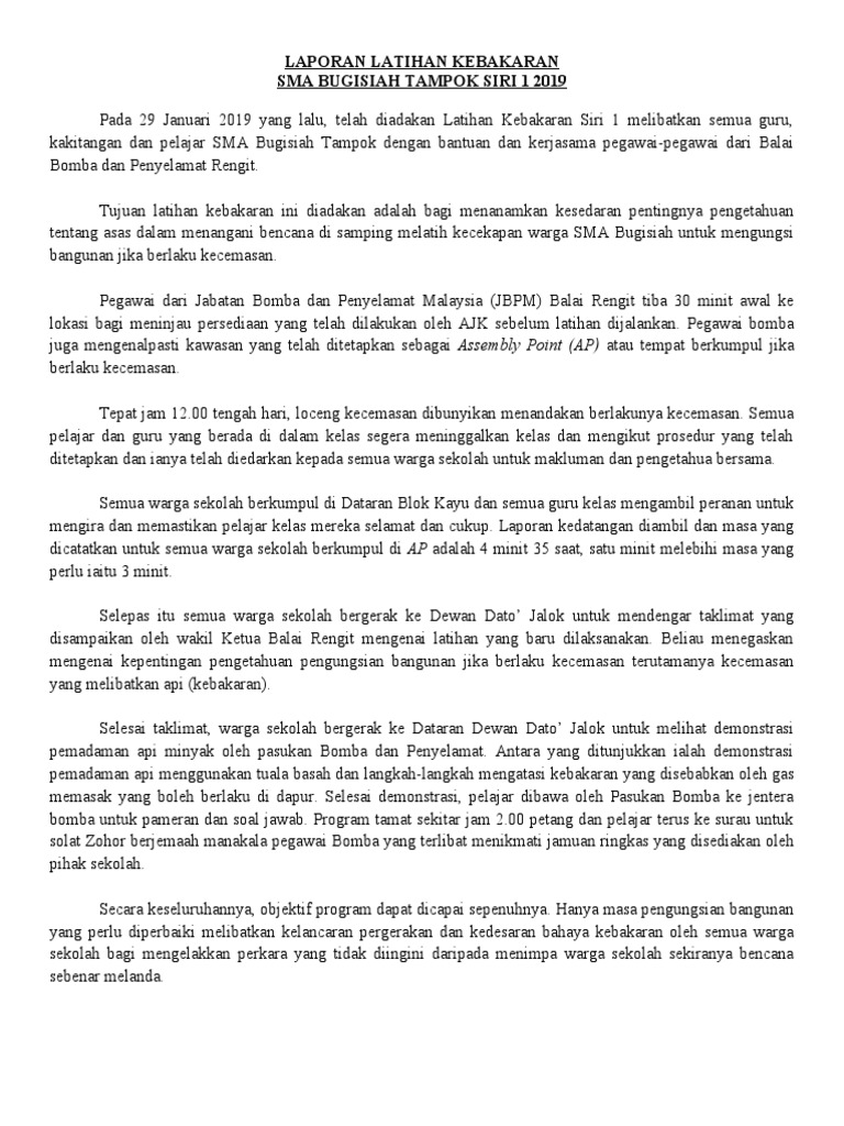 Contoh Laporan Latihan Kebakaran Di Tempat Kerja